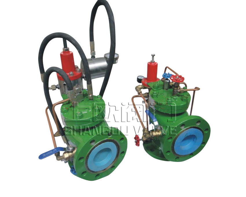 EG5001/GA6600/GA6700水擊預防閥,水擊泄放閥主要由主閥、高壓水力導閥、導管等零件組成。具有水力自動控制、高壓無條件開啟泄除水錘的功能。該閥操作平衡無振動,具有獨一無二的V型開口閥瓣和差動活塞設計,在任何工作壓力下都能給與可靠的關閉推動力,調節性能優秀,運行平穩,不會產生自身關閉水錘,大孔道高敏感的泄壓導閥響應過壓條件快速開啟主閥(水擊泄放閥),當壓力平息后可快速關閥。
