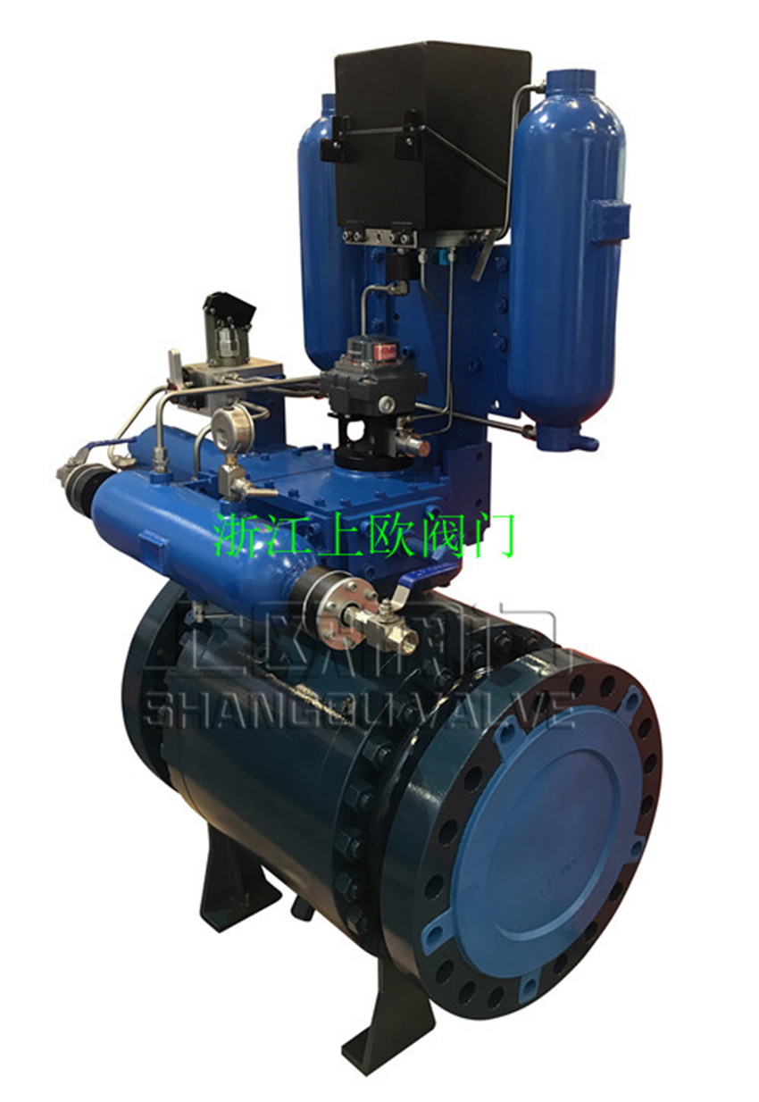 氣液聯(lián)動(dòng)球閥由氣液聯(lián)動(dòng)執(zhí)行器和高壓球閥組成。氣液聯(lián)動(dòng)執(zhí)行機(jī)構(gòu)的動(dòng)力源直接取自主管線的高壓天然氣,天然氣經(jīng)過濾之后,直接進(jìn)入儲(chǔ)氣罐儲(chǔ)存。采用集成模塊、大流量、高壓設(shè)計(jì)技術(shù),使較少的控制元件承受高壓,延長密封件的壽命、減少配管、減少系統(tǒng)泄漏點(diǎn)從而提高了設(shè)備的整體安全性。 液壓系統(tǒng)具有傳動(dòng)剛性強(qiáng)、不易壓縮、傳動(dòng)平穩(wěn)、易于密封等優(yōu)點(diǎn)。